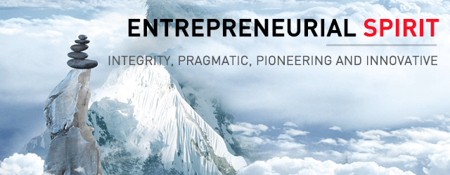 Entrepreneurial spirit: "integrity, pragmatic, pioneering and innovative"